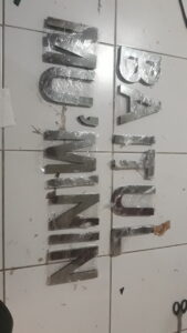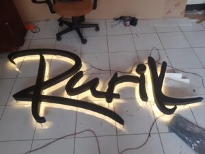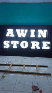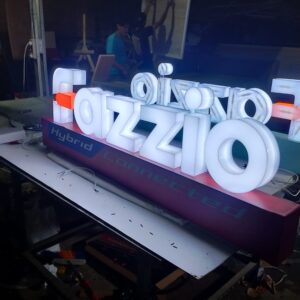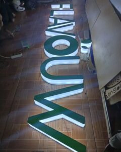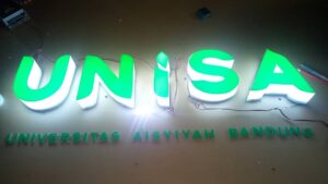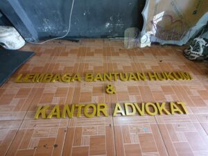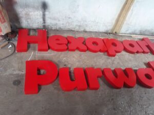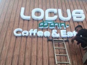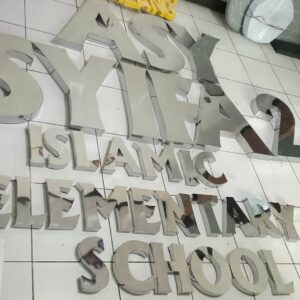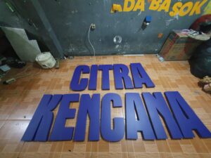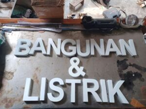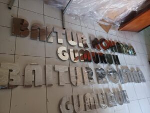 Huruf timbul adalah jenis signage atau papan nama yang menggunakan huruf atau logo dengan bentuk tiga dimensi (3D). Biasanya terbuat dari berbagai bahan seperti akrilik, stainless steel, galvanis, atau kayu, huruf timbul memberikan efek visual yang lebih menarik dan profesional.